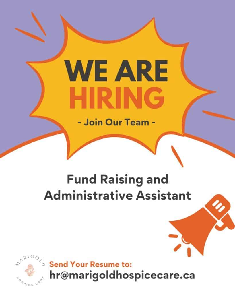 Join Our Team at Marigold Hospice Care. Are you passionate about making a difference in your community? We’re looking for a Fundraising and Administrative Assistant (part-time, 3 days/week) to support our mission in Clarington, ON.